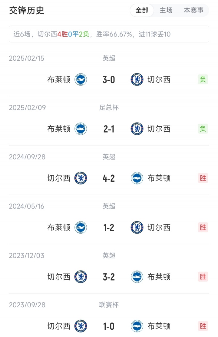截至赛前,切尔西2胜2平1负积8分,排名英超积分榜第6;布莱顿1胜2平2负积5分,排名英超积分榜第14。